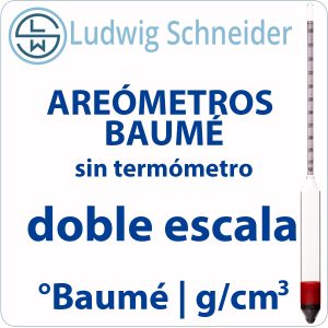 Los Areómetros Baumé son instrumentos de flotación que permiten la medida directa de la densidad de un líquido, es decir, la cantidad de masa contenida en determinado volumen. Incorporan una escala y graduación específica de densidad referida en grados Baumé (°Bé). Esta escala la creó el farmacéutico y químico francés Antoine Baumé (1728-1804).