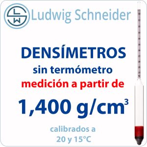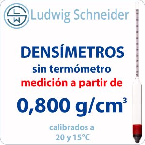 Los densímetros calibrados en g/cm³ son ampliamente utilizados en laboratorios y procesos industriales donde se requiere una lectura directa y precisa de la densidad de líquidos. En BERMAN Termómetros e Instrumentación ofrecemos una gama completa de densímetros en g/cm³ fabricados por Ludwig Schneider, referencia mundial en instrumentos de medición.